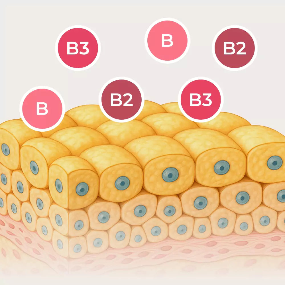 *Biotin (Vitamin B7), Riboflavin (Vitamin B2) und Niacin (Vitamin B3) tragen zur Erhaltung normaler Schleimhäute bei.